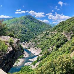 Nach einer erholsamen Nacht in Camprodon geniesse ich die morgendliche Fahrt bei blauem Himmel über den Col d'Ares hinhein ins Haut Vallespir (F),