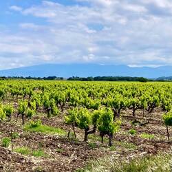 Bei Bourg-Saint-Andéol überquere ich die Rhone und tauche kurz nachher in die Rebhänge des Gebietes der ehemaligen (Gegen-)Päpste in Avignon ein.