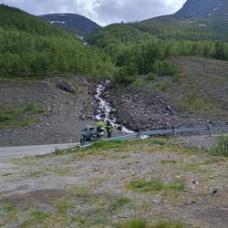 Heute wieder eine absolute Traumtour, unendliche Fjord Landschaften und Kurven. Ein Tunnel war wegen Baustelle gesperrt, 300 Meter über gröbsten Schotter. Hört sich nicht viel an, aber Bergab schonЧитать далее