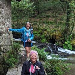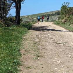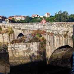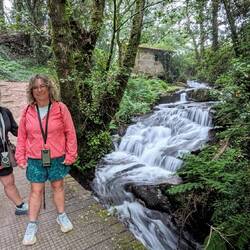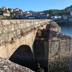 Leaving Santiago we were now a group of five. We had a 22 km day through lovely forest paths and a few villages. There was a wonderful old Roman bridge and waterfall on the way where we took photos.Read more