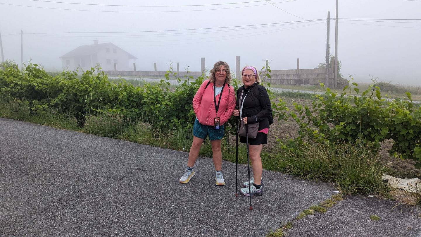 Today the Camino splits into the direction of Finisterre or towards Muxia. We're walking first to Finisterre where Joyce, Kamla and I took photos.
