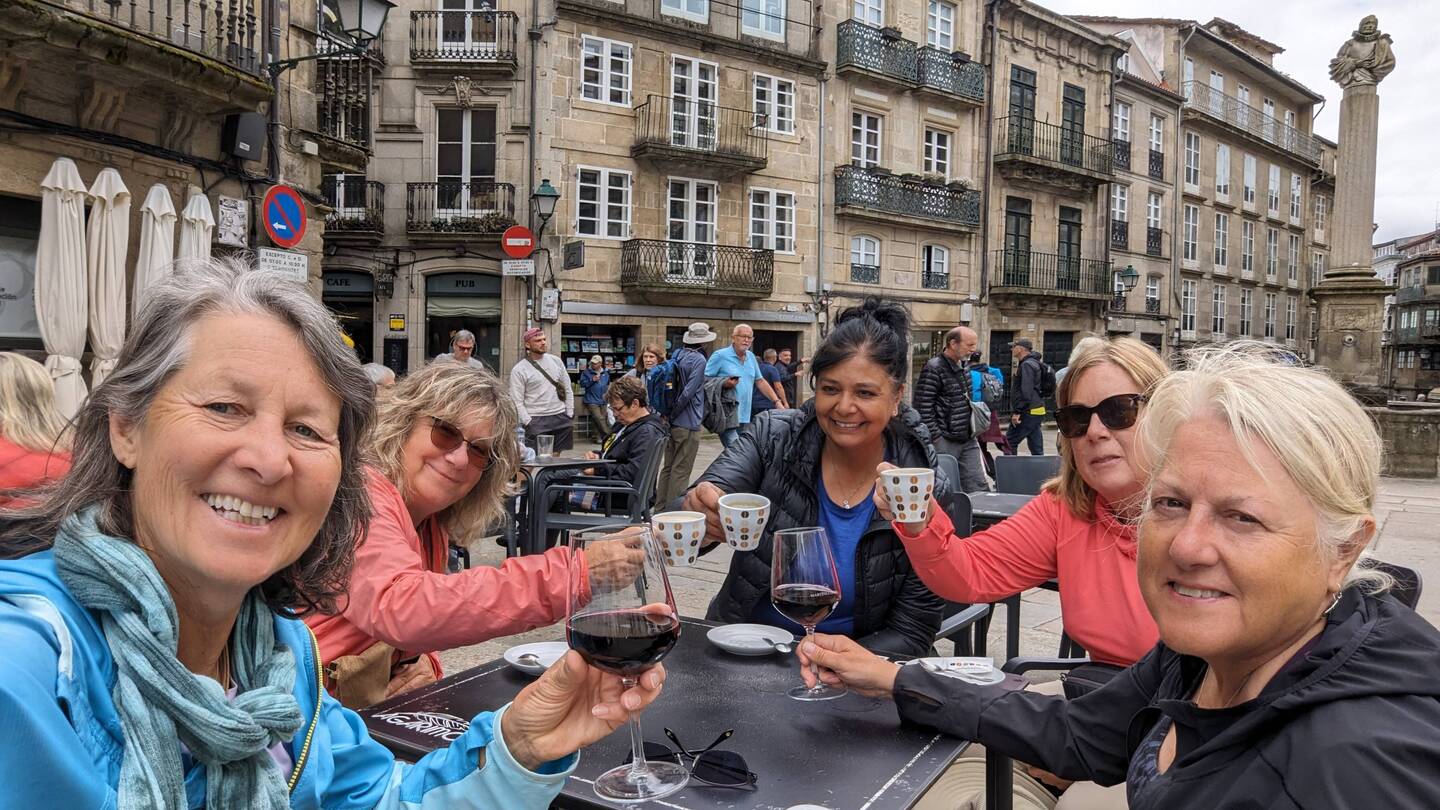 Today we met up with Joyce and Kamla shortly after arriving in Santiago. They will be walking the Camino Finisterre with us to Muxia. We had dinner together and walked around the historic town.