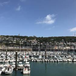 Camperplads tæt ved lystbådehavn og by i Fécamp. Gik en tur langs med strandpromenaden, stod længe og så på den skulptur som var sat op, samt lyttede til musikken som var ligeså dragende uden at give mening. Da manden hold pause kunne jeg ikke lade være med at spørge lidt ind til dette projekt.