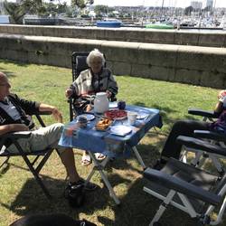 Ruth og Erling som vi har skrevet sammen med over nettet, havde også lige en overnatning her, vi mødtes og fik det lille Sønderjyske kaffebord 🙂 om eftermiddagen.