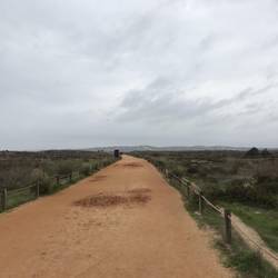 Vi kørte til Alvor, lidt vest for Portimao, hvor vi havde set en 6 km vandre vej, delvis på træbroer og sandstier.