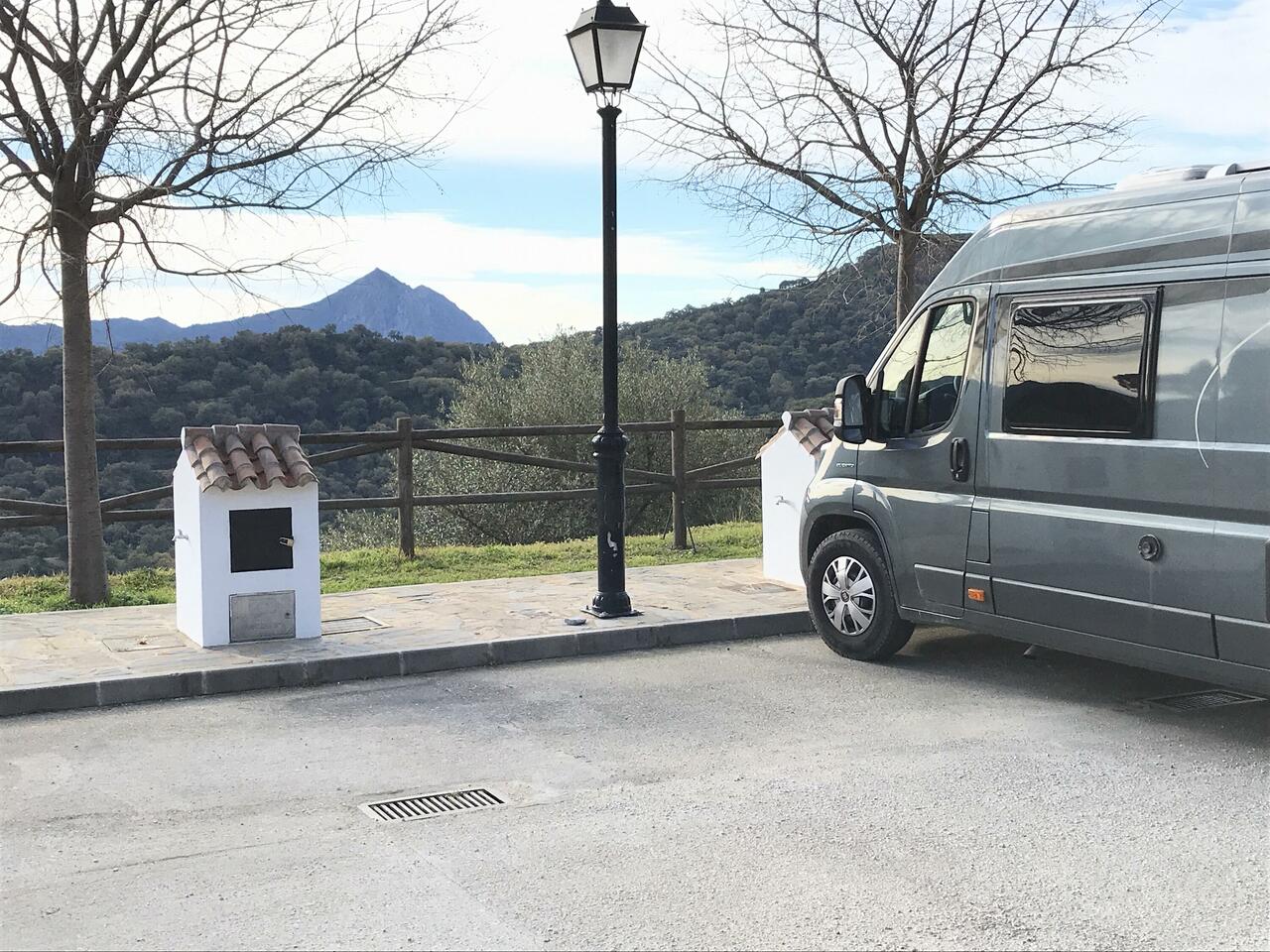 Lige før byen er der lavet holdepladser til 5 ac, vi kørte derfor tidligt fra Casares, hvor der var rift om pladserne, med håbet om at få en her.