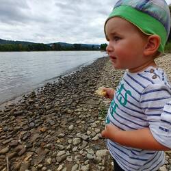 Heute machen wir einen Ausflug am Rhein entlang, es gibt Spielplätze, Eis und für Pixie ein Bad im Fluss.