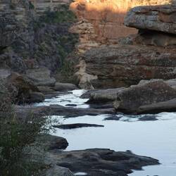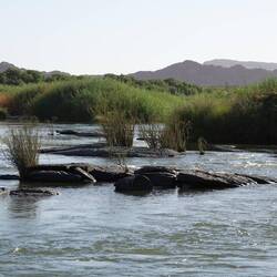 Nach dem frühmorgentlichen Bad im warmen Orijane river fahren wir weiter Richtung Meer. 350 km gravel road oder 550 km über Teerstraße? Wir entscheiden uns für die kürzere Version. Nach 50 kmMeer informatie