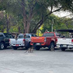 We are going on a night safari to see some critters. Apparently, the safari already started with these visitors on our balcony-lol!