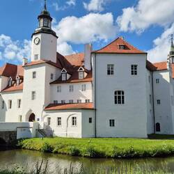 Nach dem Frühstück bei den Zebus ca. 1 Autostunde nach Fürstlich Drehna gefahren. Dort zum Wasserschloss und dem angrenzenden Lenne Park. Das Schloßensemble gehört einem franz. Unternehmen. Dieもっと詳しく
