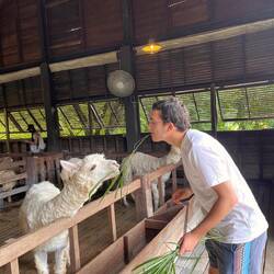 ביום למחרת החלטנו לאכול ארוחת בוקר בסבן אילבן ומיהרנו למקום שראיתי באינטרנט ומציג את עצמו כחוות אלפקות. כשהגענו ראינו שבעצם המקום הרבה יותר מרשים ויש בו ניסיון ממש עתיר תקציב לחקות את טוסקנה- גשרי עץ, מבנים ישנים (לכאורה) , מזרקות ואפילו בתי קפה ציוריים וחוות עם טחנות קמח מלאכותיות. אבל לחלוטין השיא היה פינה מגודרת עם בערך 10 אלפקות מקסימות שמתמסרות לליטופים ושיש לידן גם 20 כבשי מרינו (שמהפרווה שלהן מכינים את הציוד לטרקים הקרים) שגם היו חמודות בקטע מוגזם