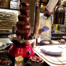 הצלחנו להנות מ4 פעמים בופה עם 4 מטבחים שונים שהשף מוציא לך מנות אישיות של פסטה פירות ים בערב אם תרצה וחביתת חלבונים עם גבינת עזים ובייקון לפי בקשתך ובסוף אתה זוכה לקנח בפונדו ממזרקת שוקולד וגלידות ומוסים בטעמים מענגים שונים