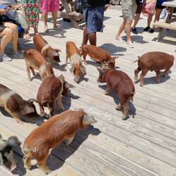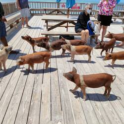 バハマ諸島で可愛い豚ちゃんと泳ぎました。大笑いしました!😅🐖