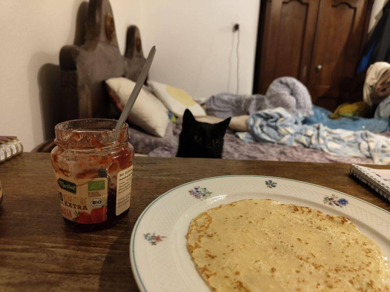 Da Berndi bespitzelt mich beim Palatschinken essen :-) :)