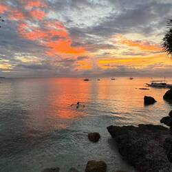 Heute mieteten wir uns einen Roller für 700 Pesos (CHF 11.-), was hier in Südostasien sehr teuer ist. Die Strände, die wir heute besuchten waren wunderschön und es hatte kaum Leute. Hingegen an dem Strand, an dem wir den Sonnenuntergang schauten, der war gut besucht.