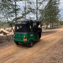 Für die 135km von Ella nach Arugam Bay mit dem Tuktuk brauchten wir ca. 4h. Auf dem Weg mussten wir den Kumana Nationalpark passieren, wo wir zwei wilde Elefanten sahen.