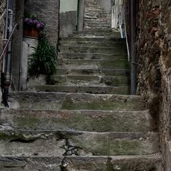 On nous a aussi indiqué où se situait les épiceries possibles pour trouver pain vin et beurre, tout près au bas des marches vous pourrez trouver que là on a dit. Après un repos d’une heure et même si la pluie tombait un peu on a décidé d’entreprendre d’aller au bas des marches pour trouver une épicerie. Hé Ta..... plus de 200 marches à descendre sans savoir où cela nous mènerait. Diane un peu hésitante et moi l’aventurier qui veut tout voir j’ai réussi à la convaincre d’aller au bout de l’aventure avec l’application AroundMe on trouve l’emplacement de l’alimentari content de notre découverte et d’avoir eu le courage de descendre pour s’apercevoir que le mercredi après midi les restos et plusieurs magasins sont fermés....lol alors revenant bredouille en remontant les marches je marmonnais que j’aurais dont du acheter le vin à 1 euros pour trois bouteilles sur la route ou nous sommes arrêtés pour prendre un café mais Madame n’aimait le Chardonnay alors j’ai du séché jusqu’à 7:30 car les restos ouvrent à cette heure la. Ce fut notre pire chicane du voyage so far. Je ne me ferai plus reprendre maintenant pour le reste du voyage à cause des goûts de Madame.
