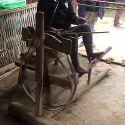 On doit se rendre en premier au Portes du Paradis, voir les boules de la Fée et une coop qui fabrique de l’artisanat à partir de la fibre de chanvre. J’avoue que la dame en charge est très engagée envers la coop et travail fort pour faire travaille les gens. Elle nous a fait une démonstration des différentes étapes pour filer le chambre en bobine et en faire un materiel qui pourra être tissé au métier à Tisser comme la grand-mère Celina dans le temps. Elle expliquait que plus de 41 étapes différentes doivent être effectuées avant le résultat final. Le rouet, le métier à tisser, le lavage, la teinture des ballots de chanvre et le tissage, tout est fait à la main par des femmes. Ce fut une belle expérience de voir cette Coopérative enrichissante pour tous. Cette dame a été considéré comme faisant parti de 50 femme les plus en vue du Vietnam et elle était la cinquième, vous verrez une photo d’elle dans la gallérie.