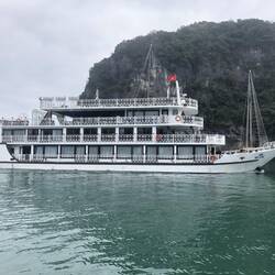 La Baie d’Halong est immense plus de 1900 îles et la baie d’Halong de la région de Ca Bat est formé de 368 îles du total de la Baie d’Halong. Pour ceux qui semblent confus avec tout ces chiffres ben dans le fond ça change quoi regarder les photos et laissez vous bercer par les vidéos et la musique de l’eau. Nous avons vu des maisons flottantes de pêcheurs qui sont parsemées le long de la Baie. Nous avons fait un arrêt sur Monkey Island ou j’ai vu des ressemblances avec certains de mes amis que je veux pas énumérer ici pour ne pas en oublier.... Le soir nous somme resté dans le Port de Ca Bat pour souper au resto Green Mango qui fut succulent avec quelques bouteilles de vins qui ajouta à l’ambiance festive de la journée.
