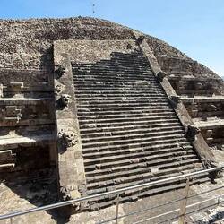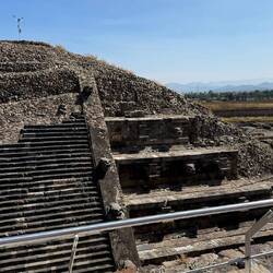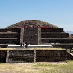Gleich daneben eröffnet sich der Blick über einen riesigen Platz zur mächtigen Mondpyramide mit mehreren kleineren Pyramiden und etwas weiter entfernt, der ebenfalls riesigen Sonnenpyramide.En savoir plus