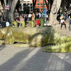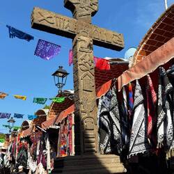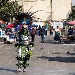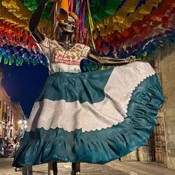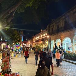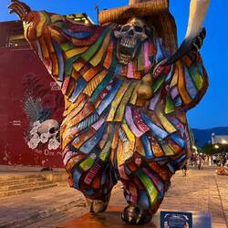 Am Abend kommen wir in Oaxaca an, eine wundervolle Stadt! Man sieht die monumentalen Figuren vom Dia de la Morte, die abends noch angestrahlt werden. Die Gassen sind voller Menschen. Es wird gegessen,En savoir plus