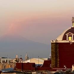 Von der Dachterrasse des Hotes bietet sich sowohl morgens als auch am Abend ein wundervoller Anblick. Im Morgendunst zeigt sich auch der Popocatepel.