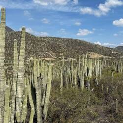Auf dem Weg nach Oaxaca durchqueren wir die Sierra Madre. Davor machen wir einen Abstecher in einen ethnobotanischen Garten, der die höchste Kakteendichte in ganz Mexiko hat. Trotz der TrockenheitEn savoir plus
