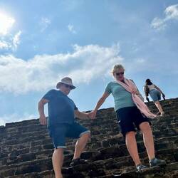 Etwas später eröffnet sich uns die ehemalige Stadt mit ihren riesigen Pyramiden. Wir kraxeln die Steilen Treppen auf und ab und sind beeindruckt von der unglaublichen Größe dieser Anlage.