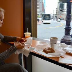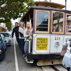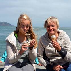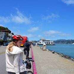 Wir mieten uns Fahrräder und fahren zur Golden Gate Bridge. Dabei kommen wir an einem lokalen Markt vorbei. Am Ende der Tour gibt's Eis zur Belohnung und zurück kommen wir mit einer Fähre.