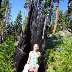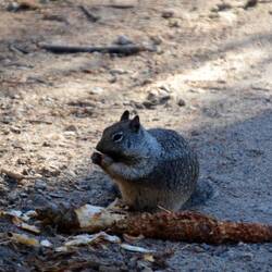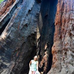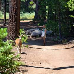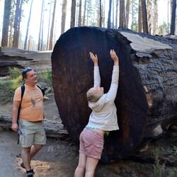 Wir wandern einen kleinen Rundweg zu den gigantischen Mammutbäumen. Die Tiere die wir beobachten sind meist eher klein - bis auf das Reh.