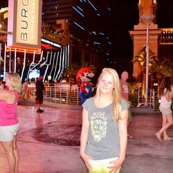 Wir kommen in Las Vegas an und fahren gleich mal mit der Bahn ins Herz der Stadt zum Strip. Wir essen fette Bürger, aber nicht bei McDonalds auch wenn der noch so funkelt.