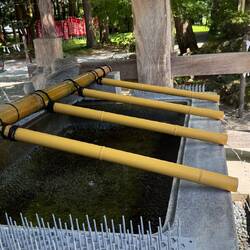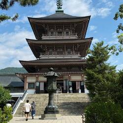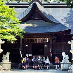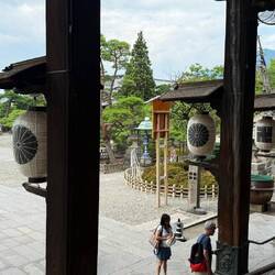 Der erste Zwischenstopp ist kein Tempel, sondern ein Schrein. Der 699 gegründete Schrein wurde mehrfach rekonstruiert, wobei das aktuelle Hauptgebäude von Naritsugu Torii 1612 errichtet wurde.