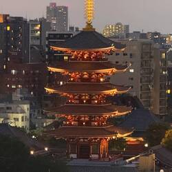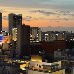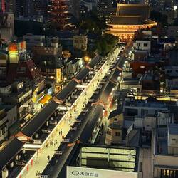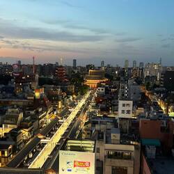 Unser Hotel ist im Stadtteil Asakusa. Nach dem Ankommen im Hotel machen wir einen kurzen Rundgang durchs Viertel. Die Läden haben schon geschlossen. Wir fahren in den 8. Stock des Asakusa CultureLäs mer