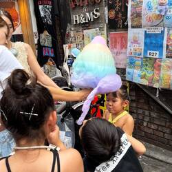 Die U-Bahn bringt uns fix in eine andere Welt von Tokyo - das Viertel der Teenager. Alles wirkt wie aus einem Manga entsprungen. Es ist bunt, soft, glitzerkitschig und süß. Die Läden bieten allesLäs mer