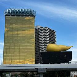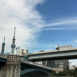 Kurze Verschnaufpause - wir erleben die beeindruckende Skyline der Stadt vom Wasser aus. Nicht zu übersehen ist der Fernsehturm „Sky Tree“ (634 m) und das goldene Gebäude einer Brauerei welchesLäs mer