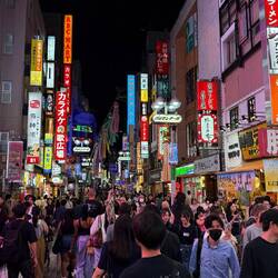 Zwischen Wolkenkratzern und Bahnstationen pulsiert hier die Stadt. Wir bestaunen am Hachiko-Platz die glitzernde Neon-Lichterwelt mit der fußgängerreichsten Kreuzung der Welt und unzähligenLäs mer
