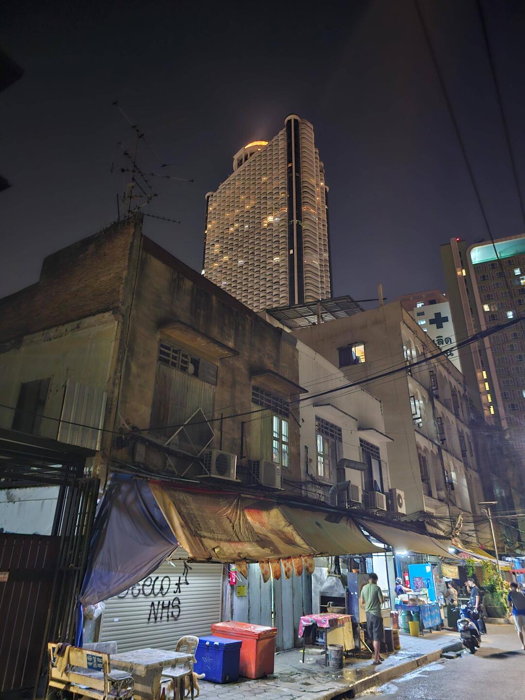 Mit der Fähre rüber nach Sathorn, letzte Haarblumen kaufen, was zum Knabbern im 7 Eleven einkaufen und dann hoch hinauf im Lebua.