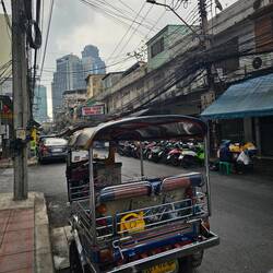 Mit dem Tuk Tuk vom Wat Sakret zum Tha Maharaj, Shoppingcenter, Mittagessen.