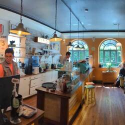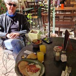 Volker hat kleines Kaffee im Hinterhof entdeckt. Vorne Großstadtlärm, Hochhäuser und Menschengewimmel. Im Cafe Soulmusik, Silmix der Einrichtung und viele Pflanzen. Erinnert mich an BerlinerRead more