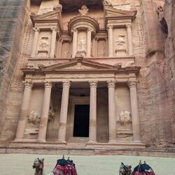 #Arriving in Amman, Jordan, we first collected our visa and immediately found our driver ☺️. After a bit of small talk and about a two-hour drive, we took a break and tried our first Mansaf – cooked lamb with rice and a yogurt sauce 🤤. After another 1.5 hours, we arrived in Wadi Musa.After dinner, we were completely exhausted and fell straight into bed 💤. Everyone said we should be in Petra early, so the alarm rang at 6:30 a.m. ⏰. After breakfast, we set off: bought tickets, hired a guide, and started walking.Countless times we were offered horses, mules, or donkeys for various paths – whether over rocks, to the monastery, stairs, or through the desert sand. Even more often, we were asked if we wanted to buy something: "Just 1 JD" 😂 If only that had been true.Petra is breathtaking – it’s hard to believe what was built here so many years ago and how well the city was supplied with water and simultaneously protected. There were water channels, cisterns, and large dams inside and outside to protect the people from floods. The sandstone displays every color imaginable: red, pink, blue, yellow, and all shades in between 🌈.On the second day, we set out without a guide and were able to discover many new things again. Altogether, we climbed countless rock steps up and down, scrambled over many rocks, and felt like we had two sandboxes full of sand in our shoes.A beautiful valley with towering rocks and mountains, plus many hoofed animals as well as dogs and cats – all very friendly. We even fed a donkey our apple cores and a banana peel.Anyone who still has the chance to experience this wonder should definitely do it. Most of the sights are easily accessible, and at this time of year, it wasn’t crowded either 👍.Read more