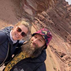 In Jordanien, Amman, angekommen, haben wir noch unser Visum abgeholt und sofort unseren Fahrer gefunden ☺️. Nach ein wenig Smalltalk und etwa zwei Stunden Fahrt machten wir eine Pause und probierten unser erstes Mansaf – Lamm (gekocht) mit Reis und einer Joghurtsoße 🤤. Nach weiteren 1,5 Stunden erreichten wir Wadi Musa.Nach dem Essen sind wir total müde ins Bett gefallen 💤. Alle sagten, wir sollten früh in Petra sein, also klingelte der Wecker bereits um 6:30 Uhr ⏰. Nach dem Frühstück ging es los: Tickets gekauft, einen Guide engagiert und losmarschiert.Unzählige Male wurden uns Pferde, Maultiere oder Esel für die verschiedensten Wege angeboten – egal ob über Felsen, zum Kloster, Treppen oder durch den Wüstensand. Noch häufiger wurden wir gefragt, ob wir etwas kaufen möchten: „Nur 1 JD“ 😂 Wenn das nur wahr gewesen wäre.Petra ist wunderschön – kaum zu glauben, was hier vor so vielen Jahren erbaut wurde und wie gut die Stadt mit Wasser versorgt und gleichzeitig geschützt war. Innen und außen gab es Wasserkanäle, Zisternen und große Dämme, die die Menschen vor Überschwemmungen schützten. Der Sandstein zeigt alle möglichen Farben: Rot, Rosa, Blau, Gelb und alle Schattierungen dazwischen 🌈.Am zweiten Tag machten wir uns ohne Guide auf den Weg und konnten erneut viele neue Dinge entdecken. Insgesamt sind wir unzählige Felsstufen hinauf- und hinabgestiegen, etliche Felsen erklommen und haben gefühlt zwei Sandkästen voll Sand in unseren Schuhen gehabt.Ein wunderschönes Tal mit hohen Felsen und Bergen, außerdem viele Huftiere sowie Hunde und Katzen – alle total lieb. Unsere Apfelreste und sogar eine Bananenschale durften wir einem Esel füttern.Jeder, der noch die Möglichkeit hat, dieses Wunder zu erleben, sollte es unbedingt tun. Die meisten Sehenswürdigkeiten sind gut zugänglich, und zu dieser Jahreszeit war es auch nicht überlaufen 👍.