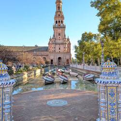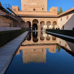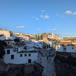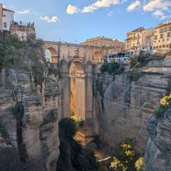 Even in Seville itself, there was already a lot to discover.We first visited the bullring, where we learned a lot about the history of bullfighting. We also explored both former Expo sites, which are still more or less well preserved and date back to 1992 and 1929.The Expo 1992 area features, among other things, a rocket and a monastery. Apparently, the original parts for the rocket were not available, so they simply used lampshades as replacements 😂.In Ronda, the famous bridge was of course a must-see. With a delicious ice cream in hand, we set off to enjoy the bridge and the sunset 🌄.On our way, we passed several villages that were built into the cliffs. Everywhere you look, there are white houses where you only see the front façades – the rest disappears into the rock.Naturally, we also visited the Alhambra. At first, we got lost in the surrounding gardens. After what felt like an extra 5 kilometres, we finally reached the entrance and explored the extensive grounds. There you can discover beautiful wall decorations and mosaics. The Alhambra is also stunning at night, when it is completely illuminated 😍.In Valencia, we visited our orange tree “Friedbert” and, of course, the associated farm “Naranjas del Carmen”. We were given an extensive tour and even got to pick oranges ourselves. At the end, there was a tasting of all the other products they make there, and we left with plenty of oranges, clementines and delicious honey 🍯.Read more