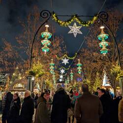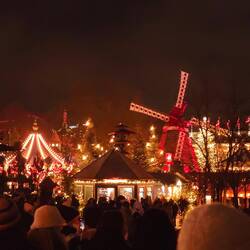 Zwischen Rathaus und Hauptbahnhof liegt der älteste Vergnügungspark Tivoli, eröffnet 1843, der auch heute noch viel Spaß bereitet! Hier funkelt alles wie auf einem riesigen Weihnachtsmarkt. Zwischen "Bahnhofstraße und dem Wasserfall" gibt es Fahrgeschäfte, ein uraltes Glücksspiel mit Schokolade als Gewinn sowie Punsch und Glühwein – natürlich unverzichtbar!