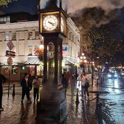 Am Abend noch ein wenig bei Regen durch Vancouver geschleudert, Robson Street, Canada Place und Gastown mit der berühmten Gasuhr. Danach todmüde ins Bett gefallen.