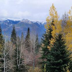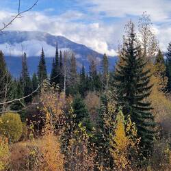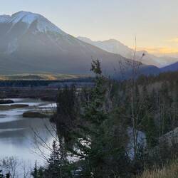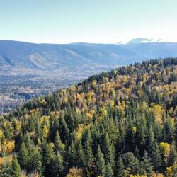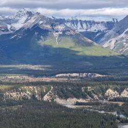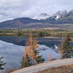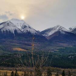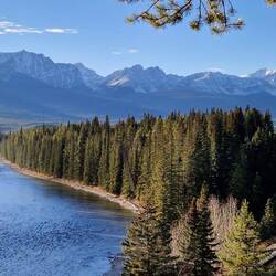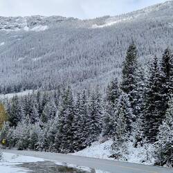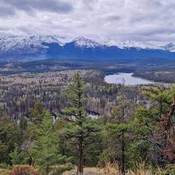 Nach dem Frühstück fahren wir bei 0 Grad ab in Richtung Yellowhead 5. Bei Sonnenschein erreichen wir unsere Unterkunft. Koffer abstellen und weitergeht es zum Green Mountain Lookout. AnschließendLes mer