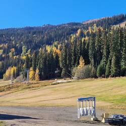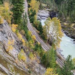 Wir verlassen heute uns Quartier am Bahngleis und fahren weiter nach Fairmount Hot Springs. Zuvor war um 7:45 aufstehen angesagt und den Rocky Mountaineer zu sehen. Dabei leider ein MuskelfaserrissLes mer