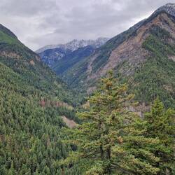 Nach dem Frühstück in der Lodge wurden die Koffer gepackt, denn heute ist Transfertag. Der dichte Nebel lichtet sich und wir fuhren den Kicking Horse Pass hoch bis zum Great Divide. Dort wurdeLes mer