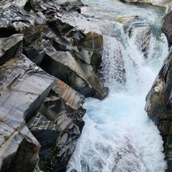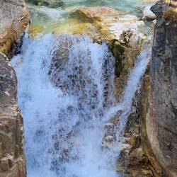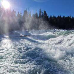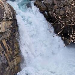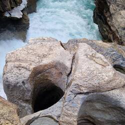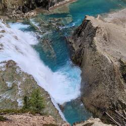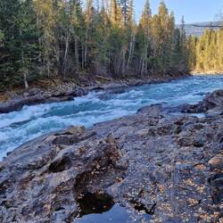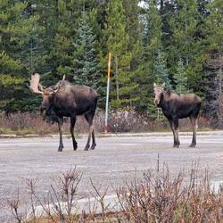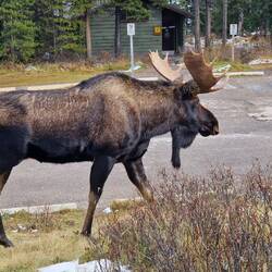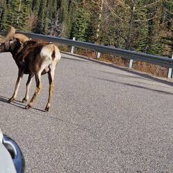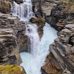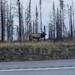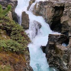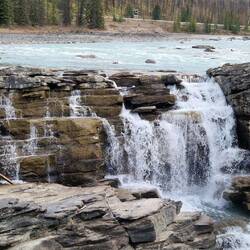 Heute Morgen in Jasper bei Smithy gefrühstückt und auf der Icefield Parkway in Richtung Banff gefahren. Gleich hinter Jasper einen Elk aufgespürt. Danach die schönen Athabasca Falls besichtigt beiLes mer