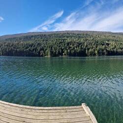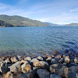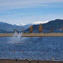 Nach winem reichhaltigen Frühstück in unserer super schönen Wohnung in Agassiz fahren wir nach Harrison Hot Springs an den schönen See. Wir laufen ein wenig und schreiben fürLes mer