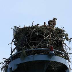 Auf einem Mast direkt vor dem Hotel haben Fischadler ihr NestRead more